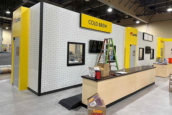 On Location partnered with VectorFive to deliver a custom 75′ x 80′ exhibit for Love’s Truck Stop at their annual private event in Grapevine, Texas. This expansive build featured branded décor and commercial-grade equipment, creating an immersive environment tailored to the client’s vision.